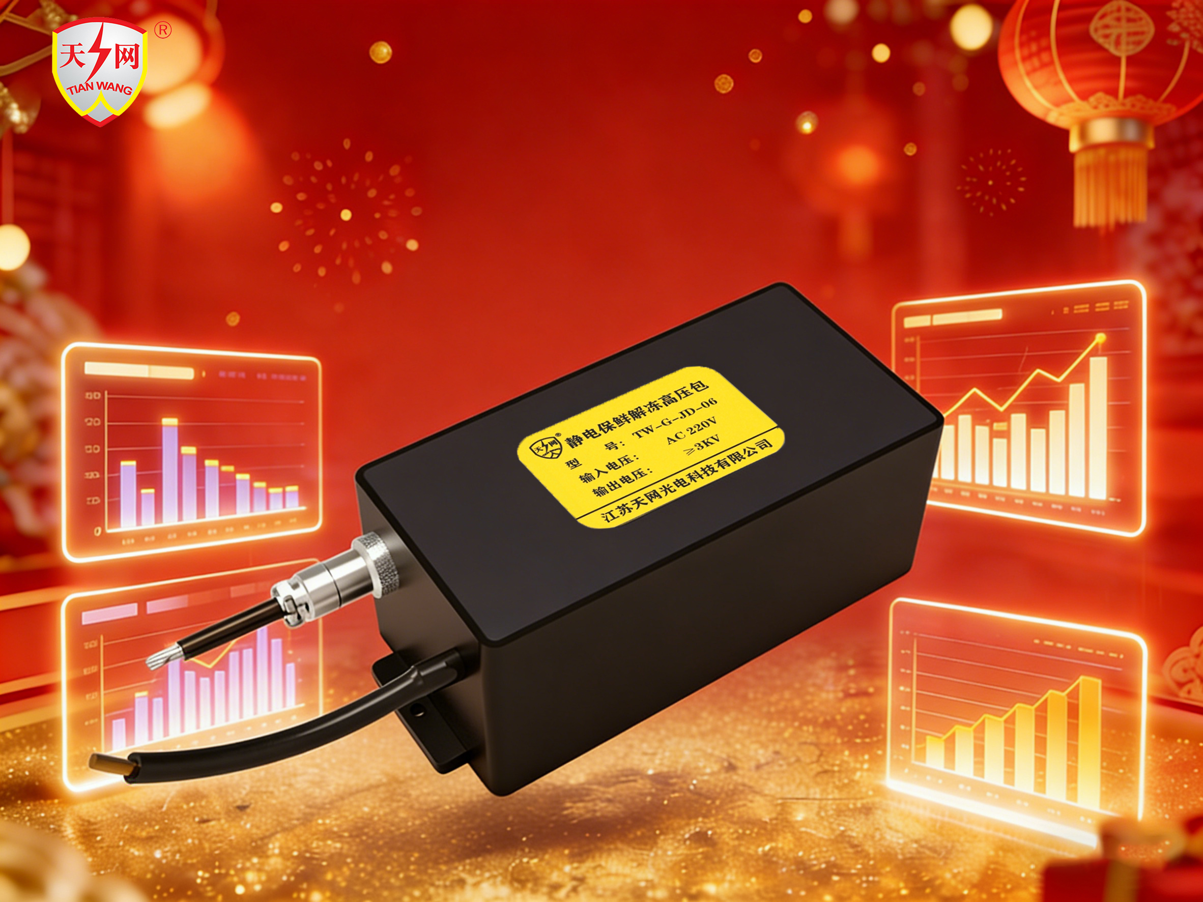 在农产品保鲜领域,传统化学保鲜方法因潜在健康风险与环境影响,已难以满足现代消费者对安全与品质的双重需求。江苏天网光电科技有限公司始终致力于研发高效、环保的保鲜解决方案,本年度高压包销量冠军产品——静电保鲜高压包TW-G-JD-06,以高压静电场技术为核心,重新定义农产品保鲜标准,为农产品中的畜禽产品等产业链提供安全、可控的保鲜新选择。
